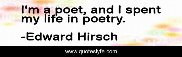 This page presents the quote "I'm a poet, and I spent my life in poetry.". Author of this quote is Edward Hirsch. This quote is about life, my life, spent,.