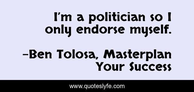 This page presents the quote "I’m a politician so I only endorse myself.". Author of this quote is Ben Tolosa, Masterplan Your Success. .