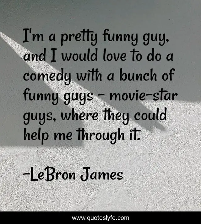 This page presents the quote "I'm a pretty funny guy, and I would love to do a comedy with a bunch of funny guys - movie-star guys, where they could help me through it.". Author of this quote is LeBron James. This quote is about me, love, help, affection,.