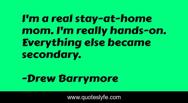 This page presents the quote "I'm a real stay-at-home mom. I'm really hands-on. Everything else became secondary.". Author of this quote is Drew Barrymore. This quote is about real, everything,.