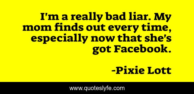 This page presents the quote "I'm a really bad liar. My mom finds out every time, especially now that she's got Facebook.". Author of this quote is Pixie Lott. This quote is about liar, she, time,.