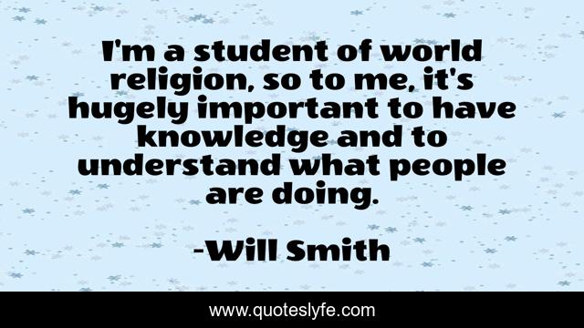 This page presents the quote "I'm a student of world religion, so to me, it's hugely important to have knowledge and to understand what people are doing.". Author of this quote is Will Smith. This quote is about me, world, knowledge,.