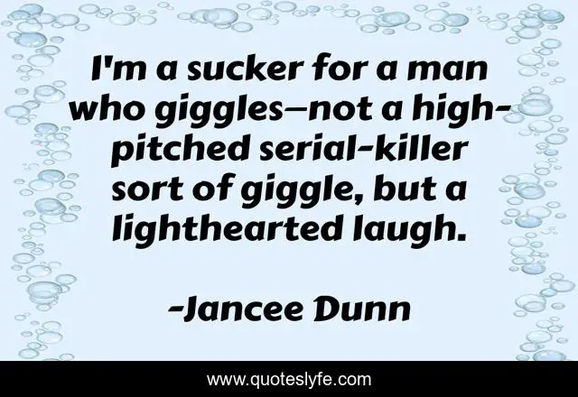 This page presents the quote "I'm a sucker for a man who giggles—not a high-pitched serial-killer sort of giggle, but a lighthearted laugh.". Author of this quote is Jancee Dunn. .