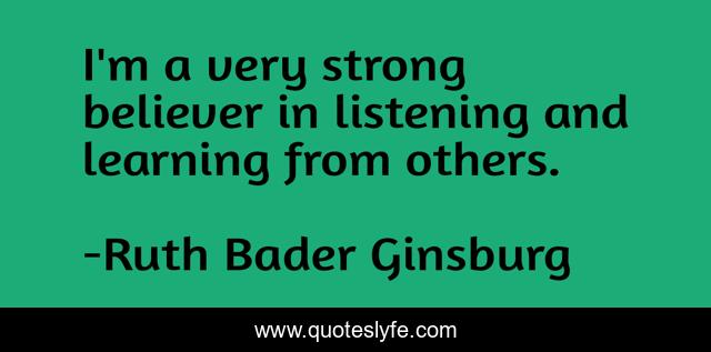 This page presents the quote "I'm a very strong believer in listening and learning from others.". Author of this quote is Ruth Bader Ginsburg. This quote is about strong, listening, others,.