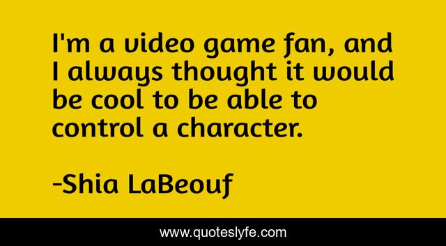 This page presents the quote "I'm a video game fan, and I always thought it would be cool to be able to control a character.". Author of this quote is Shia LaBeouf. This quote is about control, game, character,.