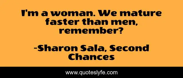 "Sharon Sala, Second Chances Quotes." Quoteslyfe.com, 2025. Mon. 08 Dec. 2025. <https://www.quoteslyfe.com/quote/I-m-a-woman-We-mature-faster-177190>.