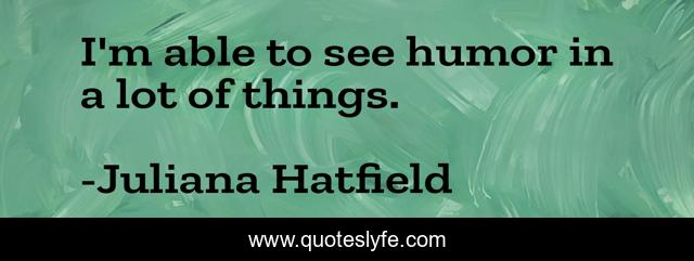 This page presents the quote "I'm able to see humor in a lot of things.". Author of this quote is Juliana Hatfield. This quote is about things, see, lot,.