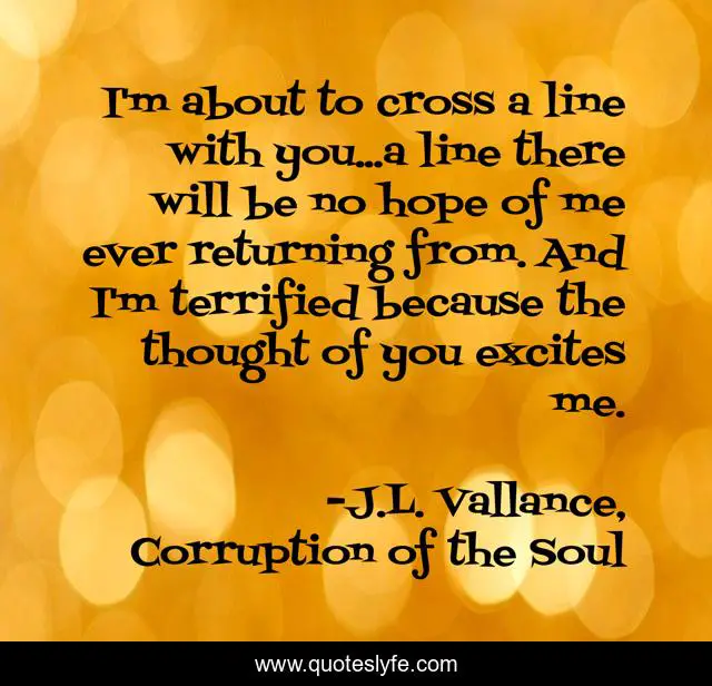 "J.L. Vallance, Corruption of the Soul Quotes." Quoteslyfe.com, 2025. Sat. 06 Dec. 2025. <https://www.quoteslyfe.com/quote/I-m-about-to-cross-a-line-132400>.