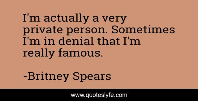 This page presents the quote "I'm actually a very private person. Sometimes I'm in denial that I'm really famous.". Author of this quote is Britney Spears. This quote is about person, sometimes,.