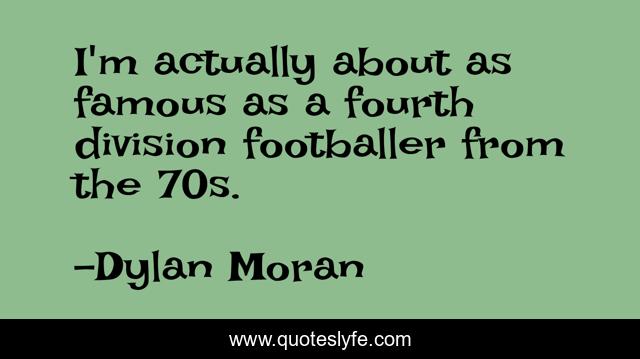 This page presents the quote "I'm actually about as famous as a fourth division footballer from the 70s.". Author of this quote is Dylan Moran. This quote is about division, footballer, fourth,.