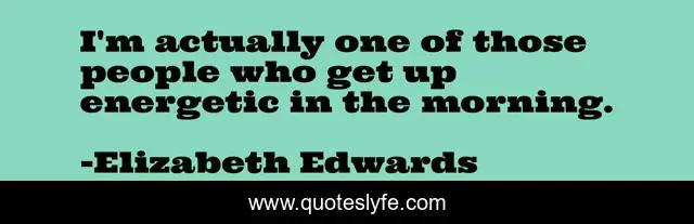 This page presents the quote "I'm actually one of those people who get up energetic in the morning.". Author of this quote is Elizabeth Edwards. This quote is about people, energetic, up,.