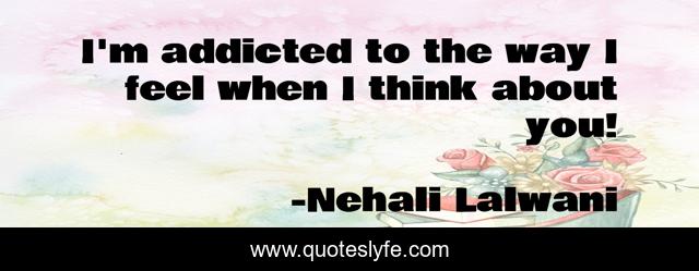 This page presents the quote "I'm addicted to the way I feel when I think about you!". Author of this quote is Nehali Lalwani. This quote is about love, thinking, feelings, addicted-to-you, feelings-of-love, lovequotes, affection,.