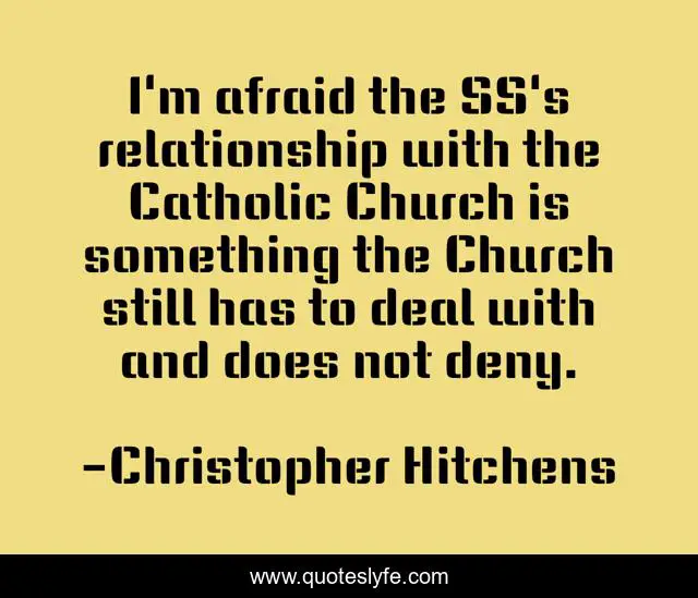 This page presents the quote "I'm afraid the SS's relationship with the Catholic Church is something the Church still has to deal with and does not deny.". Author of this quote is Christopher Hitchens. This quote is about afraid, something, church,.