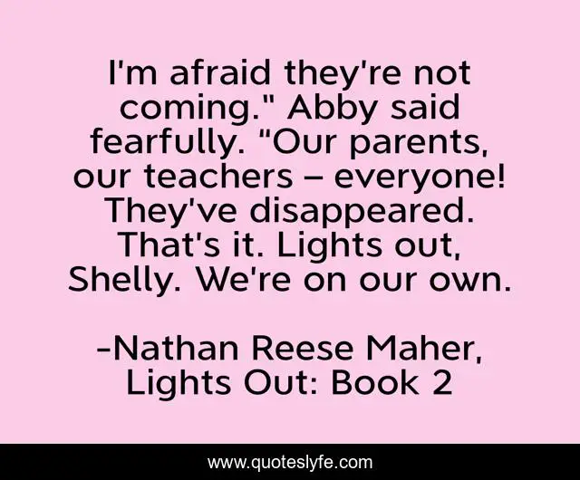 "Nathan Reese Maher, Lights Out: Book 2 Quotes." Quoteslyfe.com, 2025. Sat. 06 Dec. 2025. <https://www.quoteslyfe.com/quote/I-m-afraid-they-re-not-coming-43879>.
