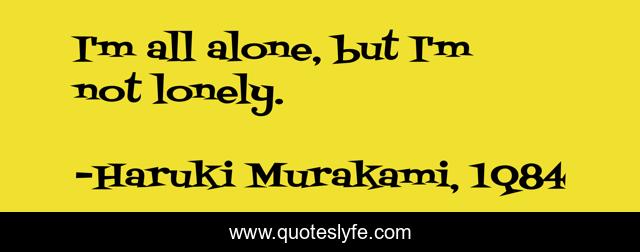This page presents the quote "I'm all alone, but I'm not lonely.". Author of this quote is Haruki Murakami, 1Q84. This quote is about alone, aomame, loneliness,.