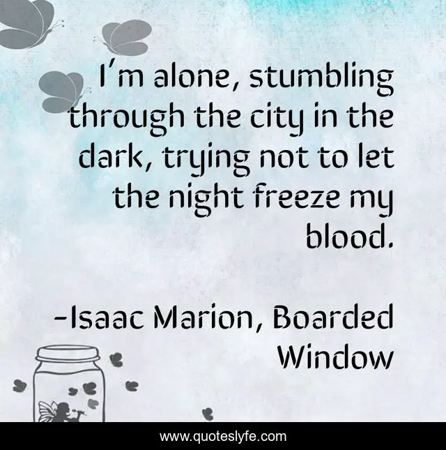 "Isaac Marion, Boarded Window Quotes." Quoteslyfe.com, 2025. Fri. 05 Dec. 2025. <https://www.quoteslyfe.com/quote/I-m-alone-stumbling-through-the-city-139323>.