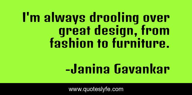 This page presents the quote "I'm always drooling over great design, from fashion to furniture.". Author of this quote is Janina Gavankar. This quote is about great, fashion, furniture,.