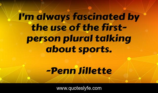 This page presents the quote "I'm always fascinated by the use of the first-person plural talking about sports.". Author of this quote is Penn Jillette. This quote is about talking, use, always,.