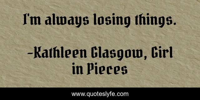 This page presents the quote "I'm always losing things.". Author of this quote is Kathleen Glasgow, Girl in Pieces. This quote is about loneliness, losing-someone,.