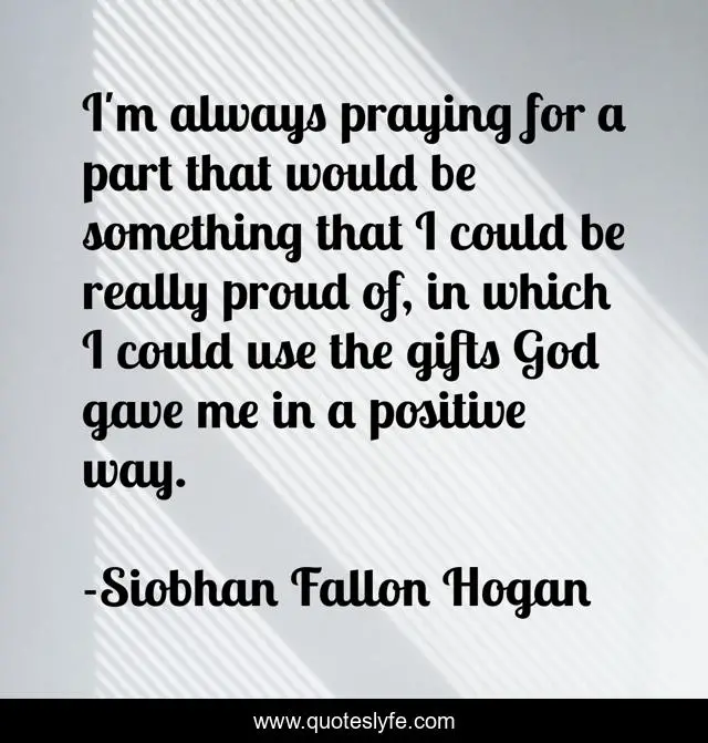 This page presents the quote "I'm always praying for a part that would be something that I could be really proud of, in which I could use the gifts God gave me in a positive way.". Author of this quote is Siobhan Fallon Hogan. This quote is about me, god, proud,.
