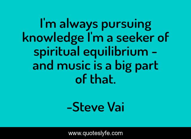 This page presents the quote "I'm always pursuing knowledge I'm a seeker of spiritual equilibrium - and music is a big part of that.". Author of this quote is Steve Vai. This quote is about always, spiritual, music,.