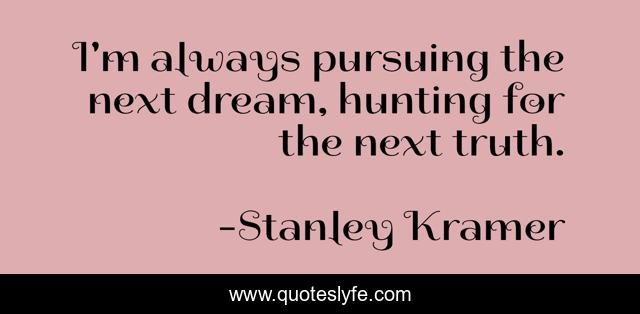 This page presents the quote "I'm always pursuing the next dream, hunting for the next truth.". Author of this quote is Stanley Kramer. This quote is about always, dream, hunting,.