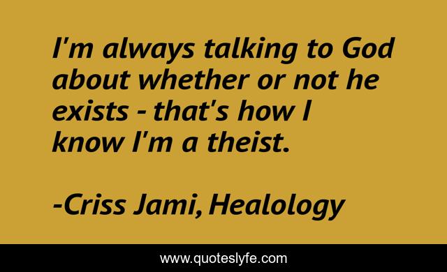 "Criss Jami, Healology Quotes." Quoteslyfe.com, 2025. Sat. 06 Dec. 2025. <https://www.quoteslyfe.com/quote/I-m-always-talking-to-God-about-11292>.