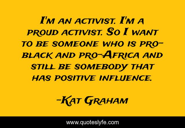 This page presents the quote "I'm an activist. I'm a proud activist. So I want to be someone who is pro-black and pro-Africa and still be somebody that has positive influence.". Author of this quote is Kat Graham. This quote is about proud, influence,.