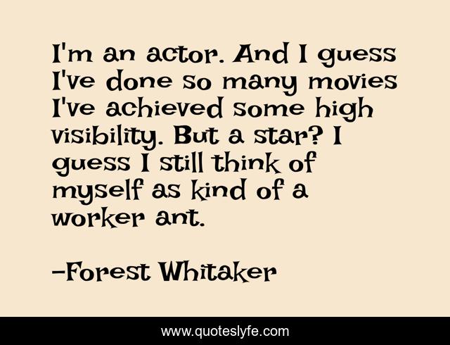 This page presents the quote "I'm an actor. And I guess I've done so many movies I've achieved some high visibility. But a star? I guess I still think of myself as kind of a worker ant.". Author of this quote is Forest Whitaker. This quote is about myself, think, actor,.