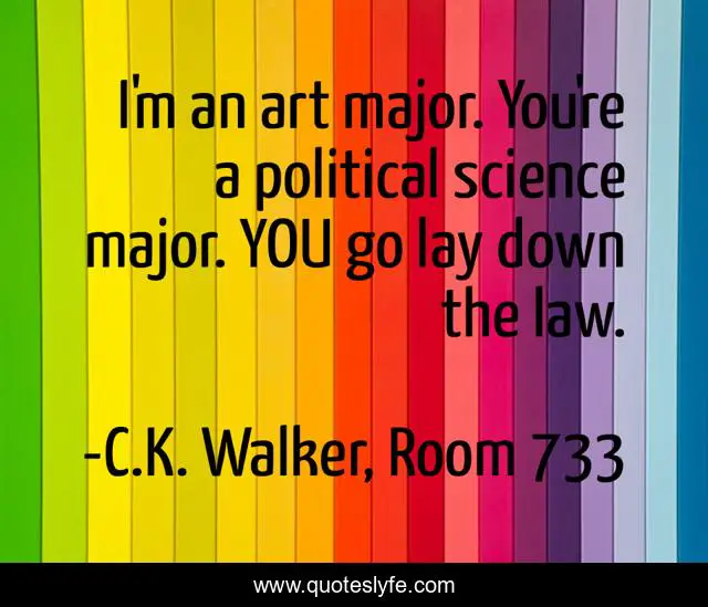 This page presents the quote "I'm an art major. You're a political science major. YOU go lay down the law.". Author of this quote is C.K. Walker, Room 733. .