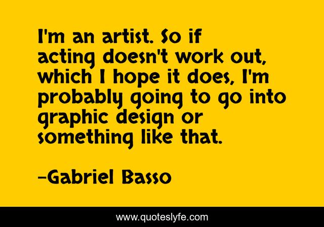 This page presents the quote "I'm an artist. So if acting doesn't work out, which I hope it does, I'm probably going to go into graphic design or something like that.". Author of this quote is Gabriel Basso. This quote is about work, design, artist,.