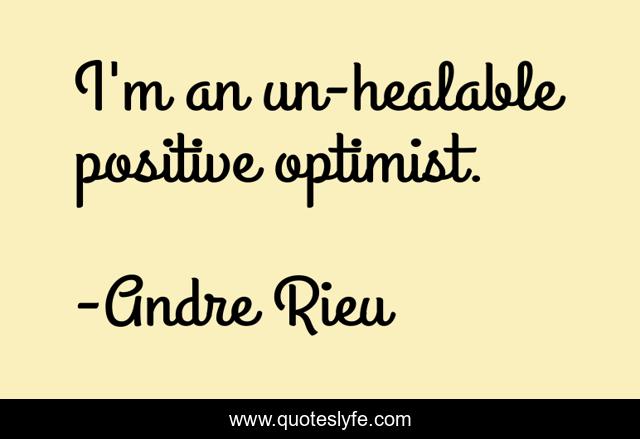 This page presents the quote "I'm an un-healable positive optimist.". Author of this quote is Andre Rieu. .