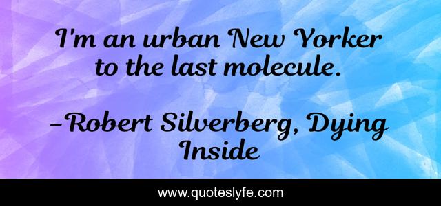 This page presents the quote "I'm an urban New Yorker to the last molecule.". Author of this quote is Robert Silverberg, Dying Inside. .