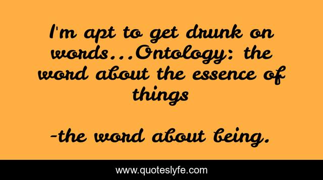 This page presents the quote "I'm apt to get drunk on words...Ontology: the word about the essence of things". Author of this quote is the word about being.. This quote is about madeleine l'engle, a circle of quiet,.