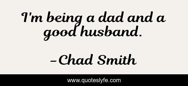 This page presents the quote "I'm being a dad and a good husband.". Author of this quote is Chad Smith. This quote is about good husband, good, husband,.