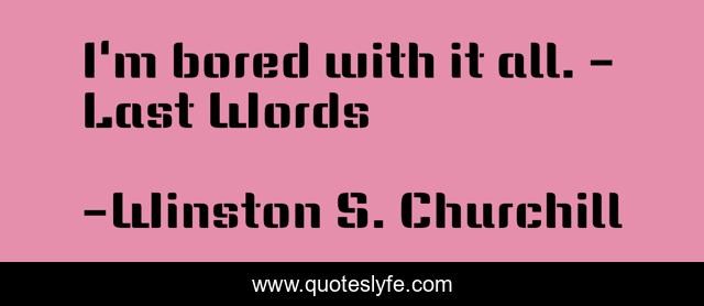 This page presents the quote "I'm bored with it all. - Last Words". Author of this quote is Winston S. Churchill. This quote is about last-words, death, boredom,.