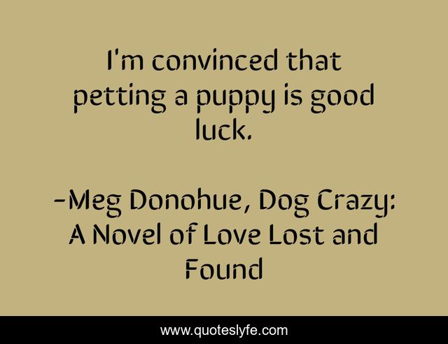 This page presents the quote "I'm convinced that petting a puppy is good luck.". Author of this quote is Meg Donohue, Dog Crazy: A Novel of Love Lost and Found. This quote is about dog-humor, dogs-and-humans, dogs, dog-rescue, puppies,.