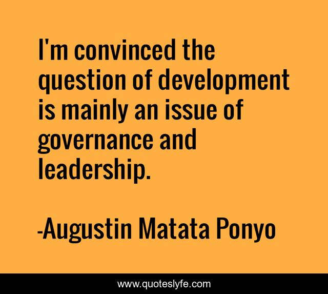 This page presents the quote "I'm convinced the question of development is mainly an issue of governance and leadership.". Author of this quote is Augustin Matata Ponyo. This quote is about development, question,.