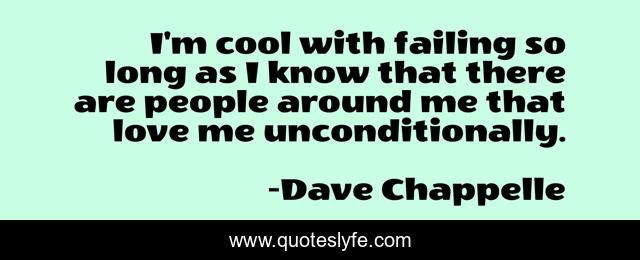 This page presents the quote "I'm cool with failing so long as I know that there are people around me that love me unconditionally.". Author of this quote is Dave Chappelle. This quote is about me, love, affection, people,.