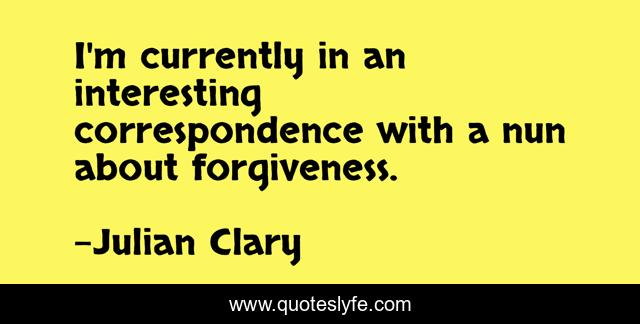 This page presents the quote "I'm currently in an interesting correspondence with a nun about forgiveness.". Author of this quote is Julian Clary. This quote is about interesting, currently,.