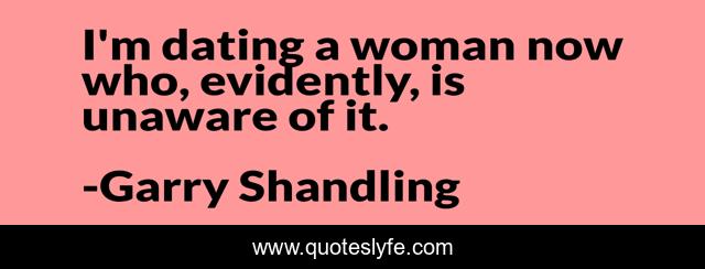 This page presents the quote "I'm dating a woman now who, evidently, is unaware of it.". Author of this quote is Garry Shandling. This quote is about woman, now, unaware,.