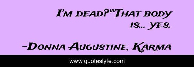 This page presents the quote "I'm dead?""That body is... yes.". Author of this quote is Donna Augustine, Karma. This quote is about urban-fantasy, karma, fate,.