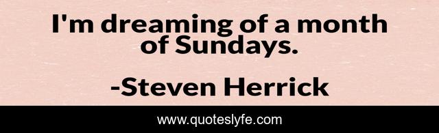 This page presents the quote "I'm dreaming of a month of Sundays.". Author of this quote is Steven Herrick. This quote is about month-of-sundays, dreaming,.