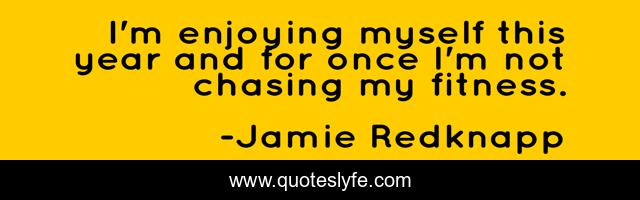 This page presents the quote "I'm enjoying myself this year and for once I'm not chasing my fitness.". Author of this quote is Jamie Redknapp. This quote is about myself, chasing, year,.