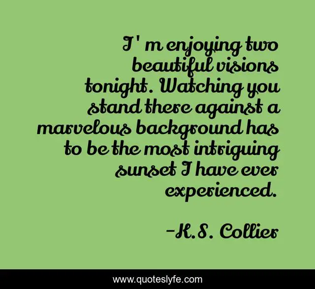 "K.S. Collier Quotes." Quoteslyfe.com, 2025. Sun. 07 Dec. 2025. <https://www.quoteslyfe.com/quote/I-m-enjoying-two-beautiful-visions-tonight-132656>.