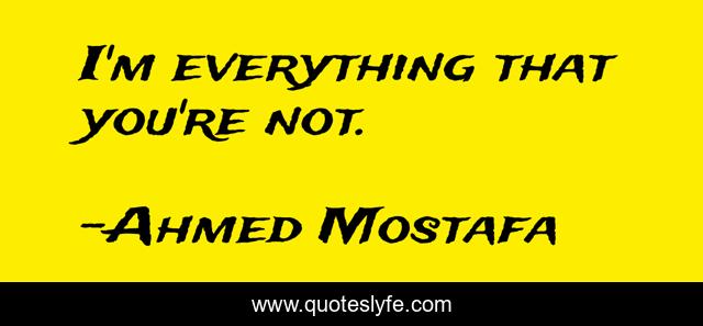 "Ahmed Mostafa Quotes." Quoteslyfe.com, 2025. Sat. 06 Dec. 2025. <https://www.quoteslyfe.com/quote/I-m-everything-that-you-re-not-30775>.
