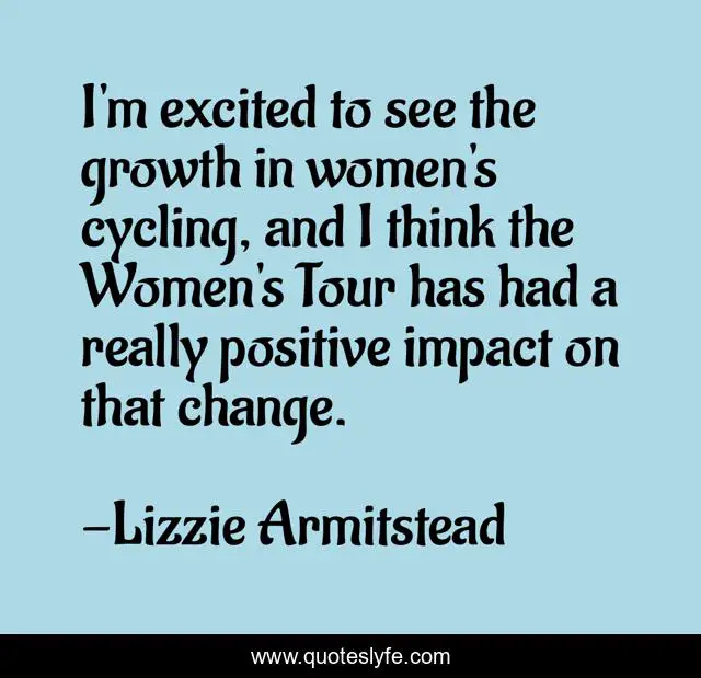 This page presents the quote "I'm excited to see the growth in women's cycling, and I think the Women's Tour has had a really positive impact on that change.". Author of this quote is Lizzie Armitstead. This quote is about growth, change, women,.