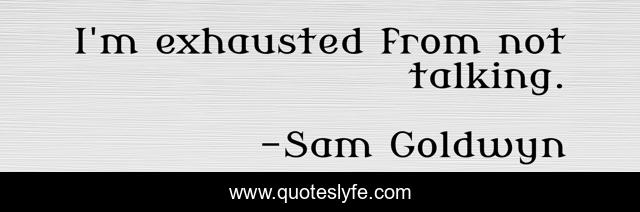 "Sam Goldwyn Quotes." Quoteslyfe.com, 2025. Sat. 06 Dec. 2025. <https://www.quoteslyfe.com/quote/I-m-exhausted-from-not-talking-276353>.