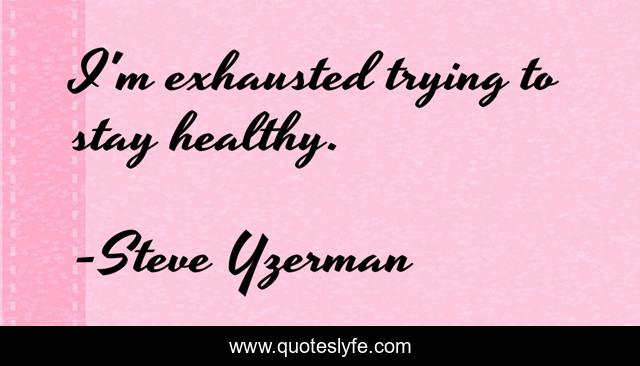 This page presents the quote "I'm exhausted trying to stay healthy.". Author of this quote is Steve Yzerman. This quote is about healthy, exhausted, trying,.