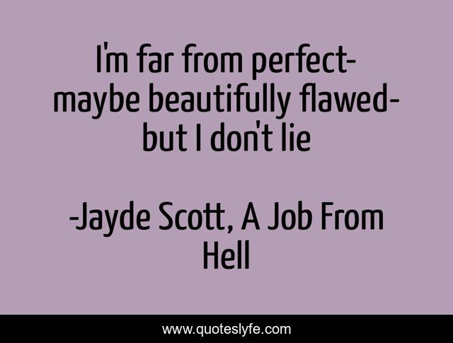 This page presents the quote "I'm far from perfect- maybe beautifully flawed- but I don't lie". Author of this quote is Jayde Scott, A Job From Hell. This quote is about lie, flaw, beautifully,.